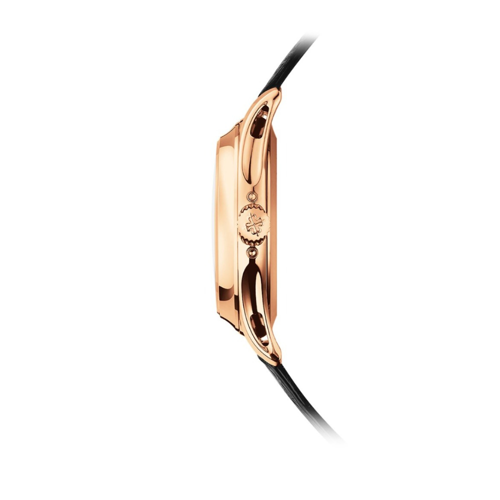 • Strap: Hand-stitched black alligator leather with rose gold pin buckle