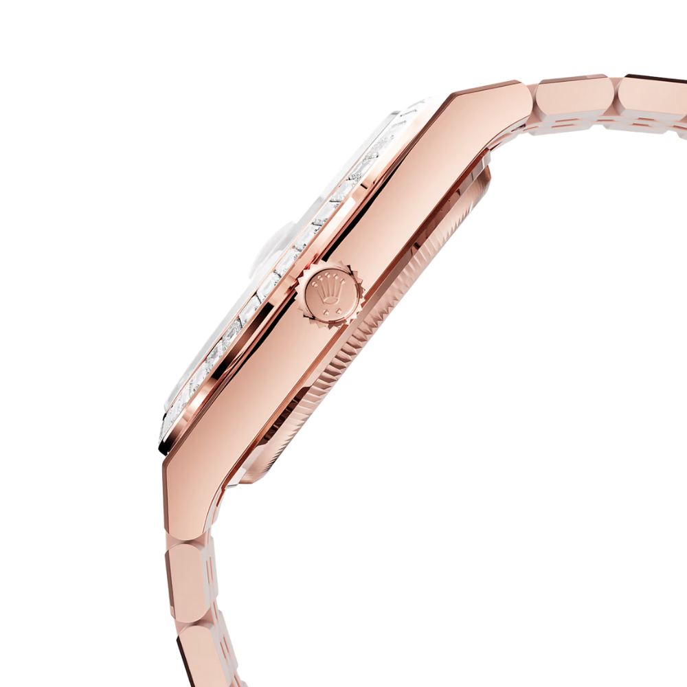 • Case: 36 mm, 18 kt Everose gold with diamond-set bezel